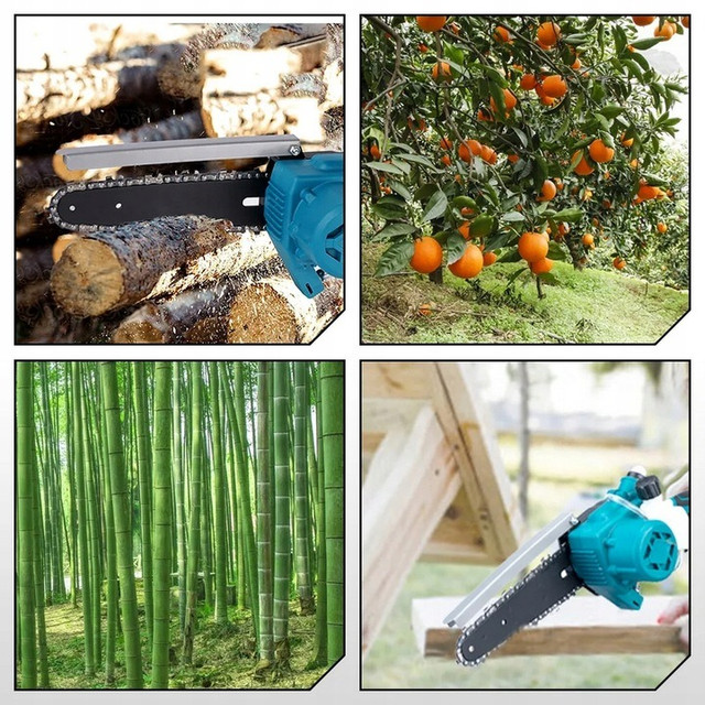 Широке використання: залежно від розміру та ваги міні-бензопили такі ж потужні та більші, як і бензопили. Його можна знайти для загальної обрізки дерев, садівництва та кущів, а також для лісозаготівлі, розпилу деревини та інших функцій. Підходить для садів, ферм, парків, лісів, пасовищ, садів, у закритих приміщеннях та інших місцях.