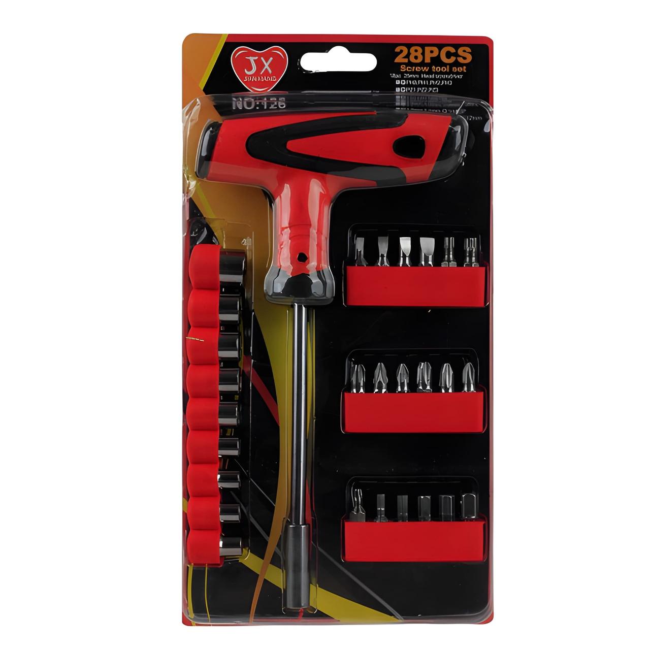 Набір біт та торцевих головок 28 в 1 з Т-подібною викруткою JX NO:126 (Магнітний)